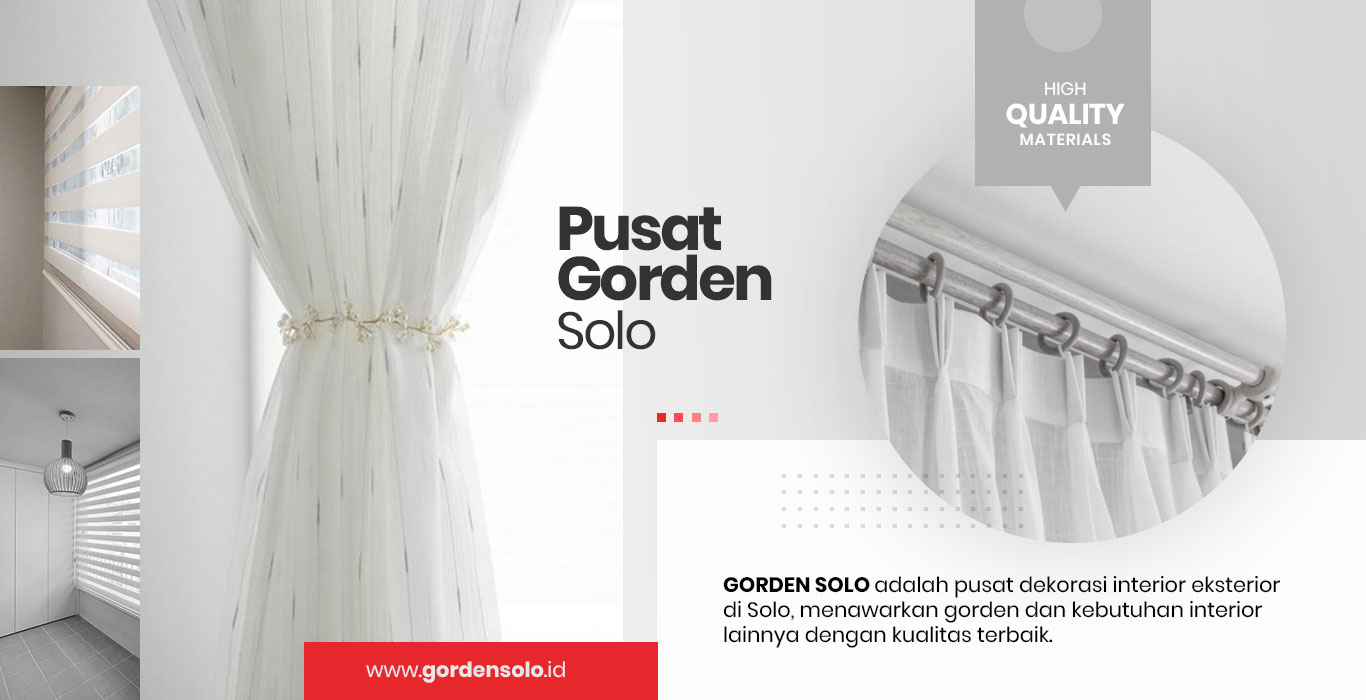 Gorden Solo merupakan pusat gorden dan dekorasi interior eksterior minimalis di Solo yang siap melayani segala kebutuhan Anda. Kami hadir memberikan layanan dan produk dengan material berkualitas terbaik di kelasnya. Gorden Solo hadir untuk memenuhi kebutuhan customer di seluruh Indonesia meliputi pembuatan dan pemasangan Gorden, Window Blinds, Kitchen Set, Partisi TV, Dipan, Kanopi. Free survei lokasi untuk pengukuran, dan layanan kami dilengkapi garansi demi kepuasan para pelanggan.